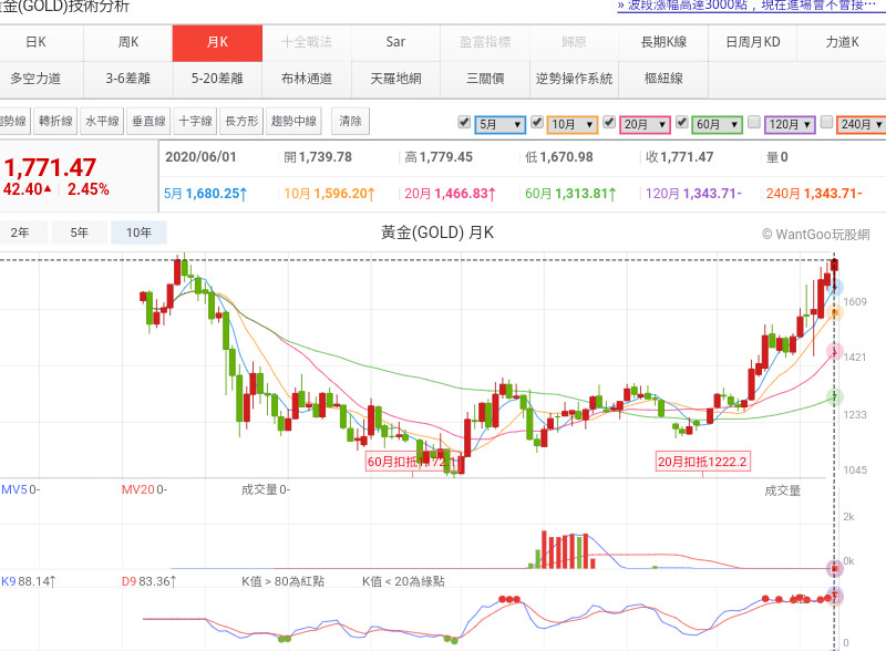 週 / 月 如果看懂了這兩張K線圖,就可以算出七月/八月黃金命運,無心說過技術指標是死的,分析是活的,該如何活用技術指標呢?直接進入分析~