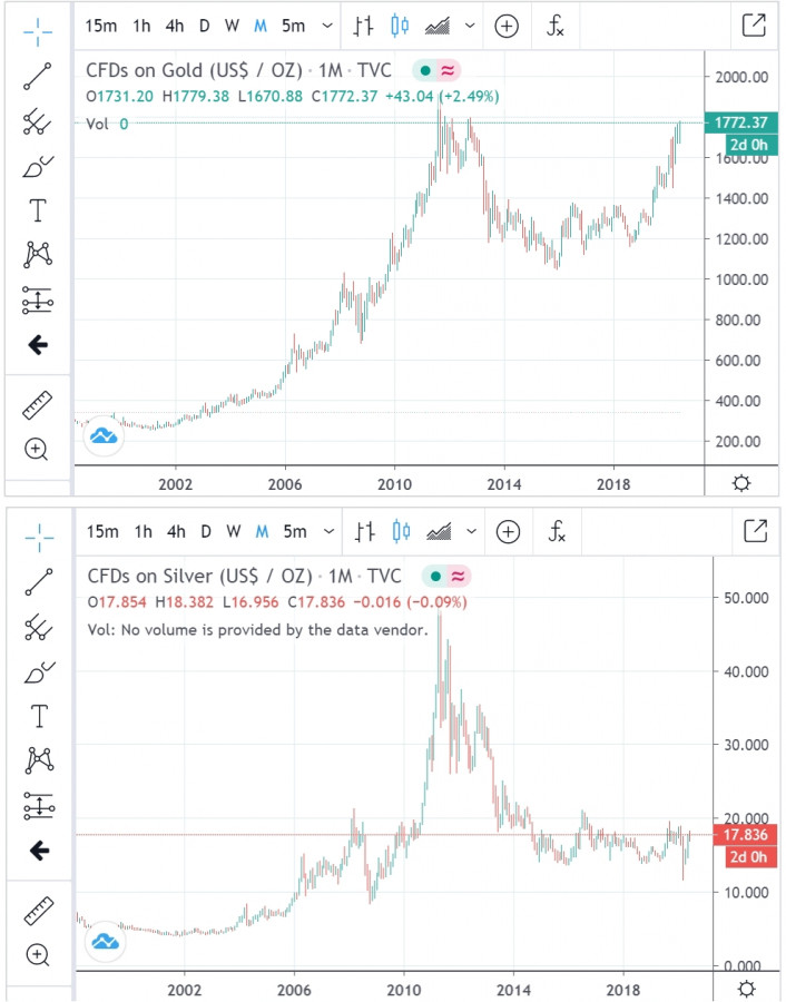 我昨天看到一篇文章,順便截了圖。大致上是說未來黃金走勢會因為政策(印鈔、放水之類的)走2~3年的上升波,如同2008年走到2012年,那白銀是否同樣會追隨黃金走這種趨勢呢?