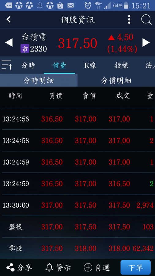 回覆 嗨爪主席:316.5 賣出3張317 賣出1張31...