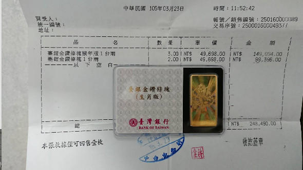PS:其實除了銀行、銀樓,市面上還有很多合法貴金屬交易公司,比如高雄的王鼎(好市多跟他進的)、台中台南高雄的炫麗,基本上只要跟他家買的他家就會回收,可以參考