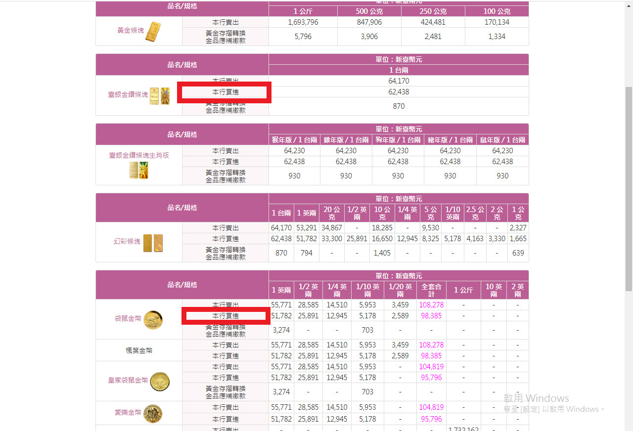 回覆 路西法之手:3、不同銀行金條塊售價基本上都以台銀公告...