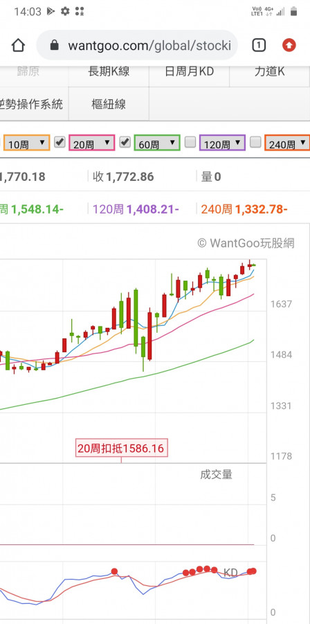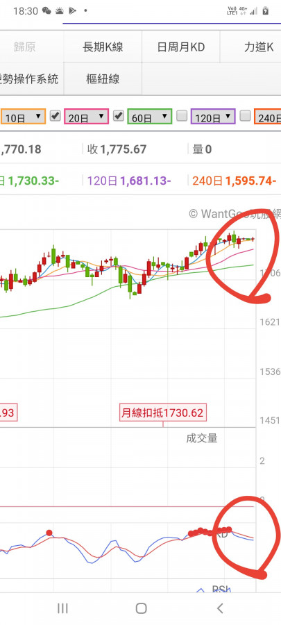 上次計算八月月均線上升位子1756,所以上週連二次測試,都在1756止跌拉升,所以八月應該是會過歷史高點。