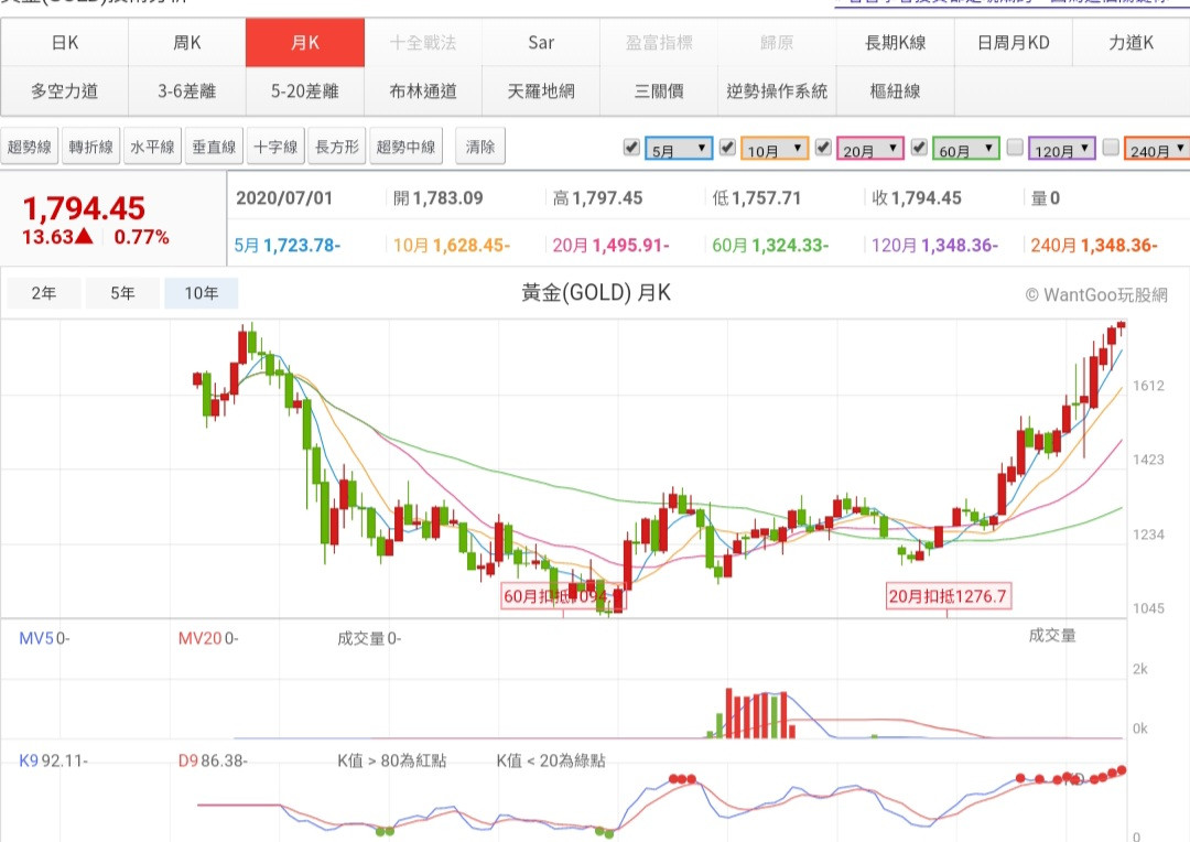 黃金的日線圖表形態顯示,價格維持在3月20日低點1455水平以來的上升趨勢線之上,目前已突破1800關口,整體形勢看好,漲破上述關口恐是大概率事件。