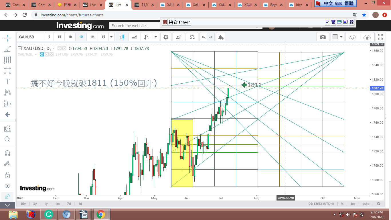 PS 我昨晚特樂觀,認為期貨過1830沒問題,因此對拉回到1700的看法嗤之以鼻,實在不應該。黃金應該會創新高,但要攻堅幾次,鏖戰多久,我會認真思考。