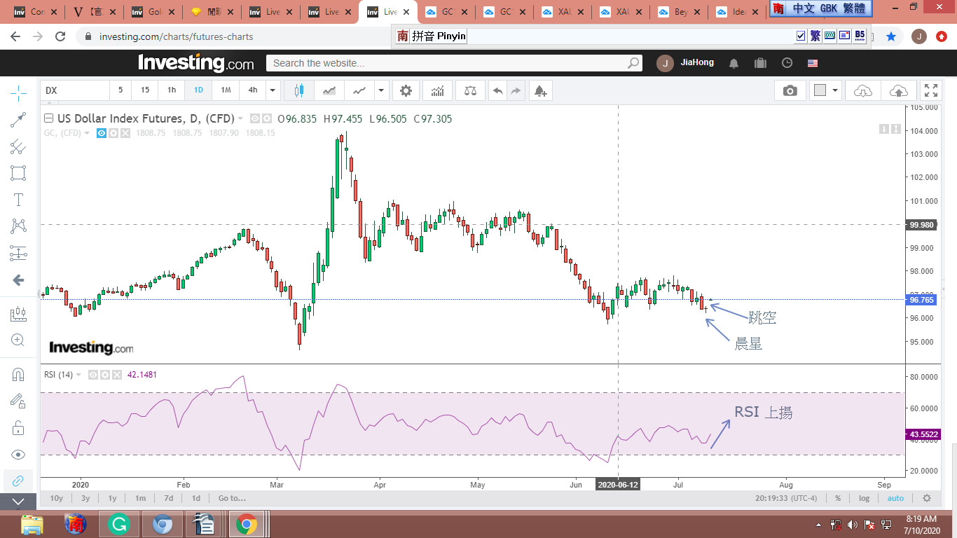 回覆 楠梓客:晨星、跳空、RSI 向上,美元要反轉上揚...