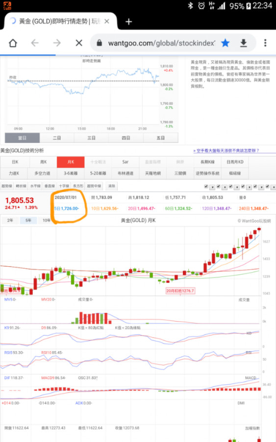 自七月初到七月十日均線上升速度可以明顯看出( 37 / 44 ),七月目前走勢仍然屬於強勢,所以大概預測八月均線上升的位置就在( 1770 )。