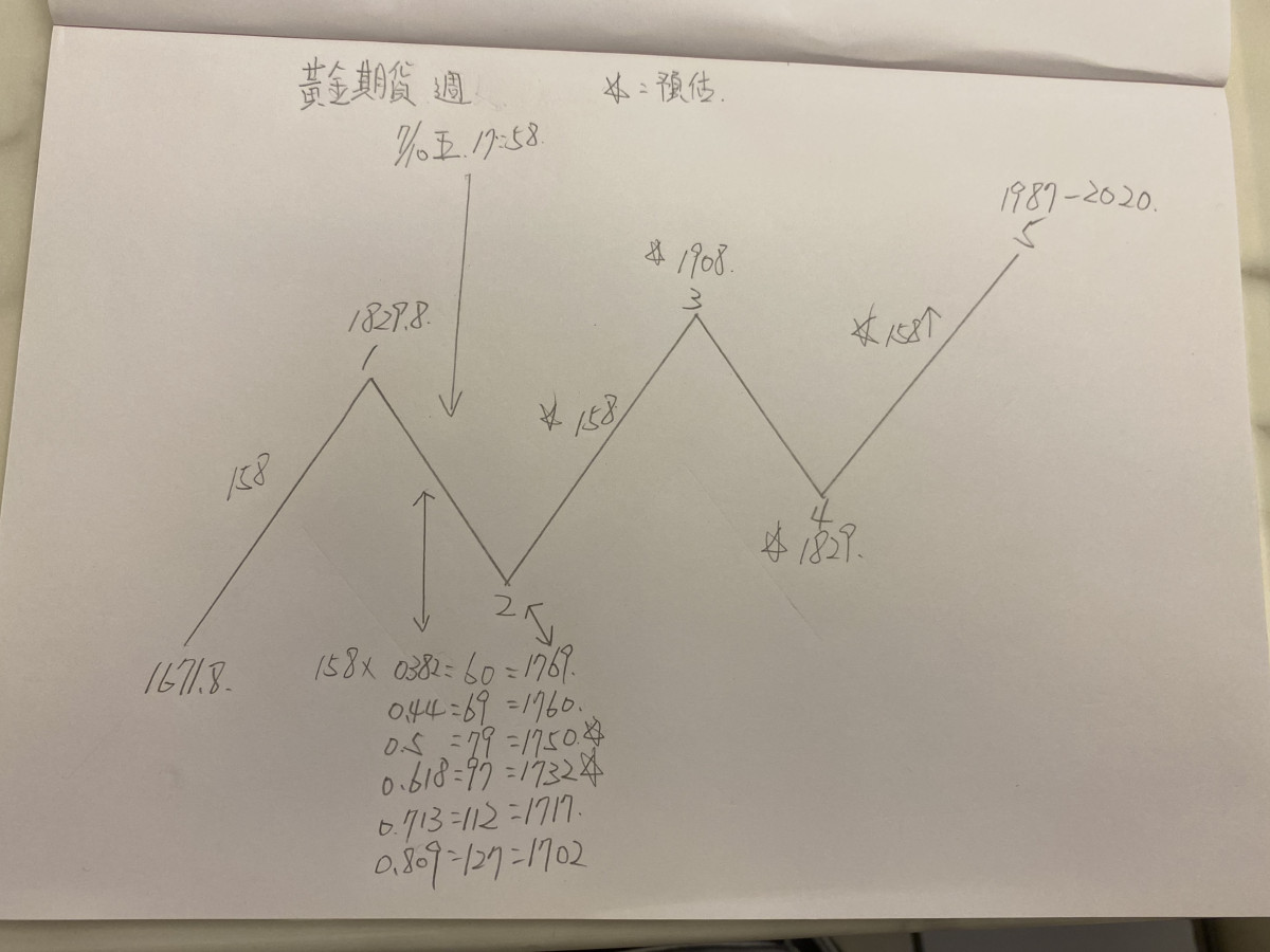 回覆 小書童:你預估期金周線2浪的那兩個預估點和我預計...