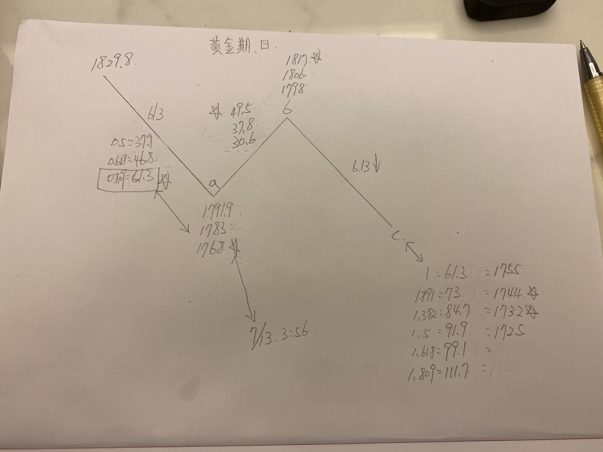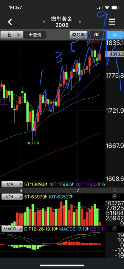 我懷疑昨天是A浪剛走完,那麼這波期金周線2浪底極限就是1752-1757
