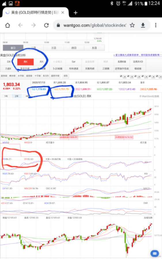 日線K值處於(6/12 K69 H1743 L1722),目前(7/14 K69 H1802 L1791)