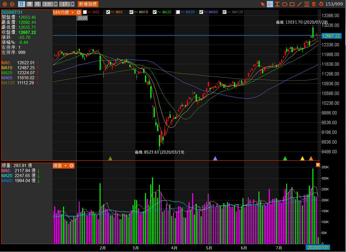 美國聯準會決議維持寬鬆貨幣政策,加上台積電ADR周三強漲7.4%,帶動台股昨(30)日上漲181點、收12,722點,創史上收盤新高點位,櫃買指數則站上5日線。上市市值與市櫃合計市值分別再創歷史新高至38.64兆元與42.39兆元。