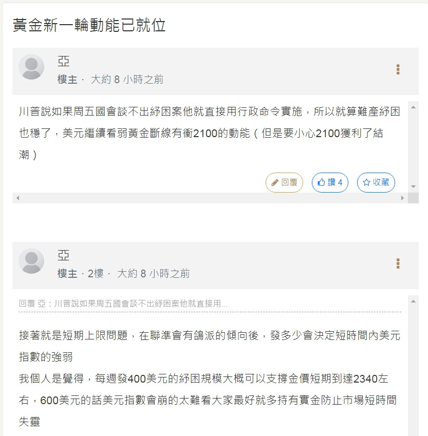 回覆 小鯨:訊息分享 : 打壓黃金的 , ...