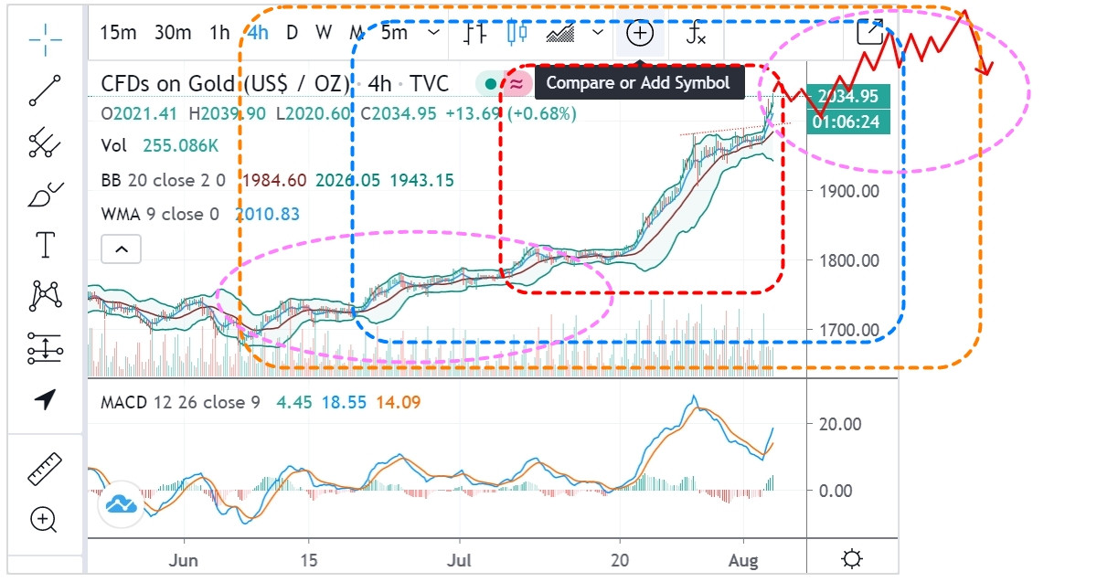 再加上4小時線, macd也快要到頂了(自認為),