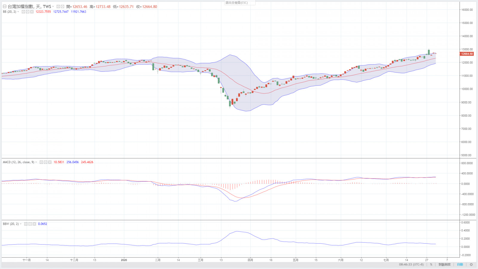 技術面:1.5 日均線 12620.74 點,10 日均線 12486.61 點,20 日均線 12323.75 點。
