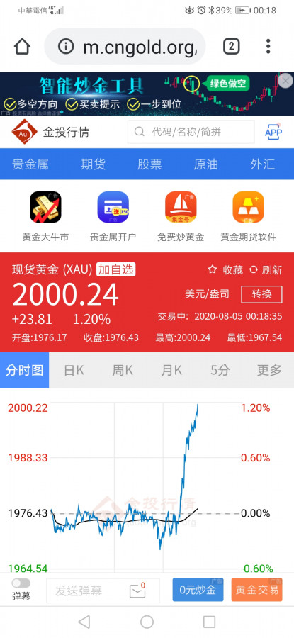 我看這周因該可以站穩$2,000了美國10年國債利息要跌破 0.5% 了 ~