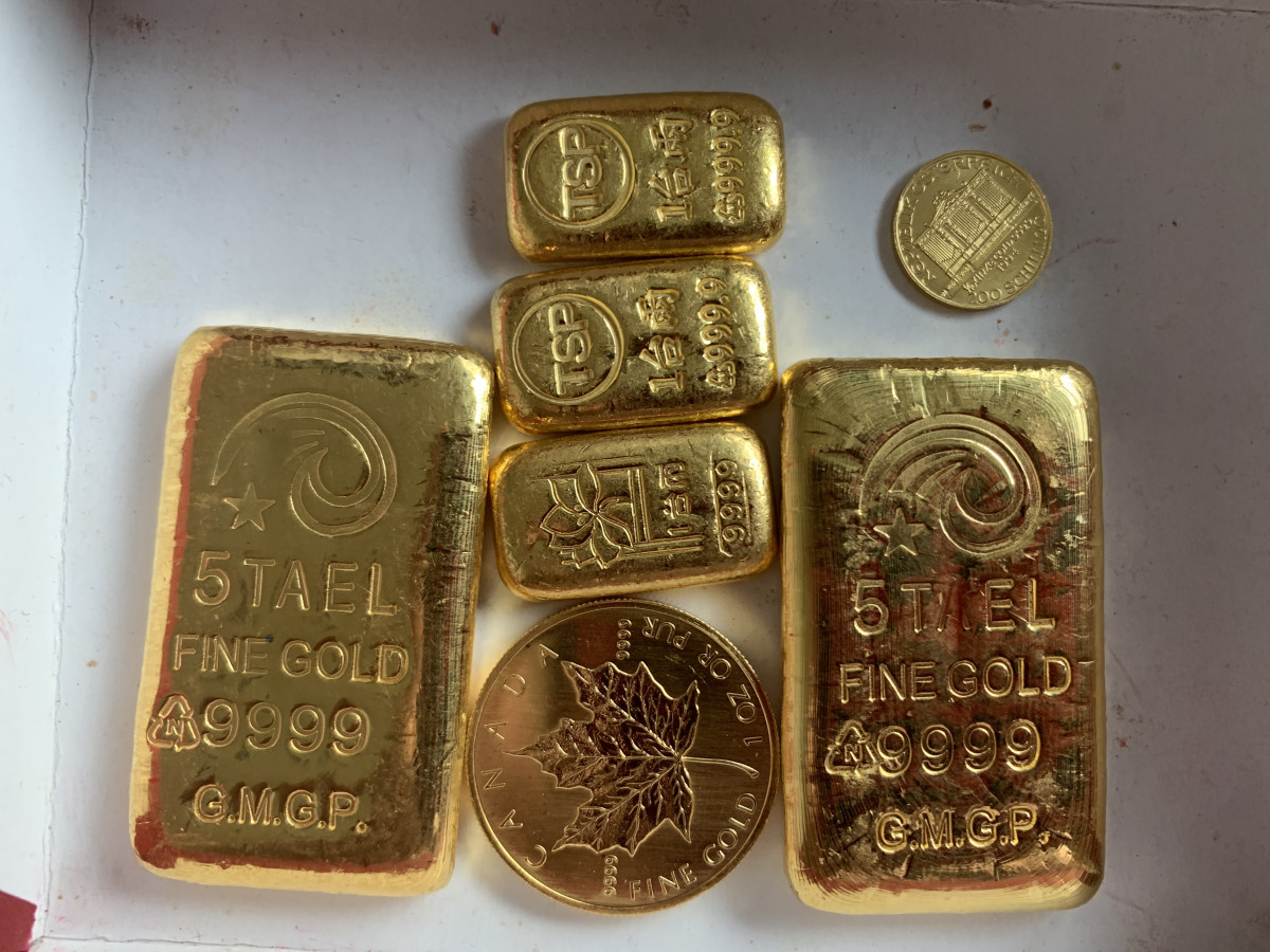 第一次買黃金是2012年,跟現在的氣氛很像,會漲到3000以上的新聞天天都有,當時金價站上1912後修正,我在1700附近建倉,買入金門金品5台兩金條2塊,結果大家應該都知道,最低的時候殺到1046,中間就是有存到錢就買個1兩金條或1盎司金幣,一直到上週五,回售品項如圖,只保留台銀12g金龍金條跟1/10盎司袋鼠金幣