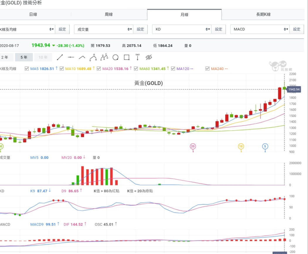 8月月線圖看K線,仍然屬強勢上漲趨勢。