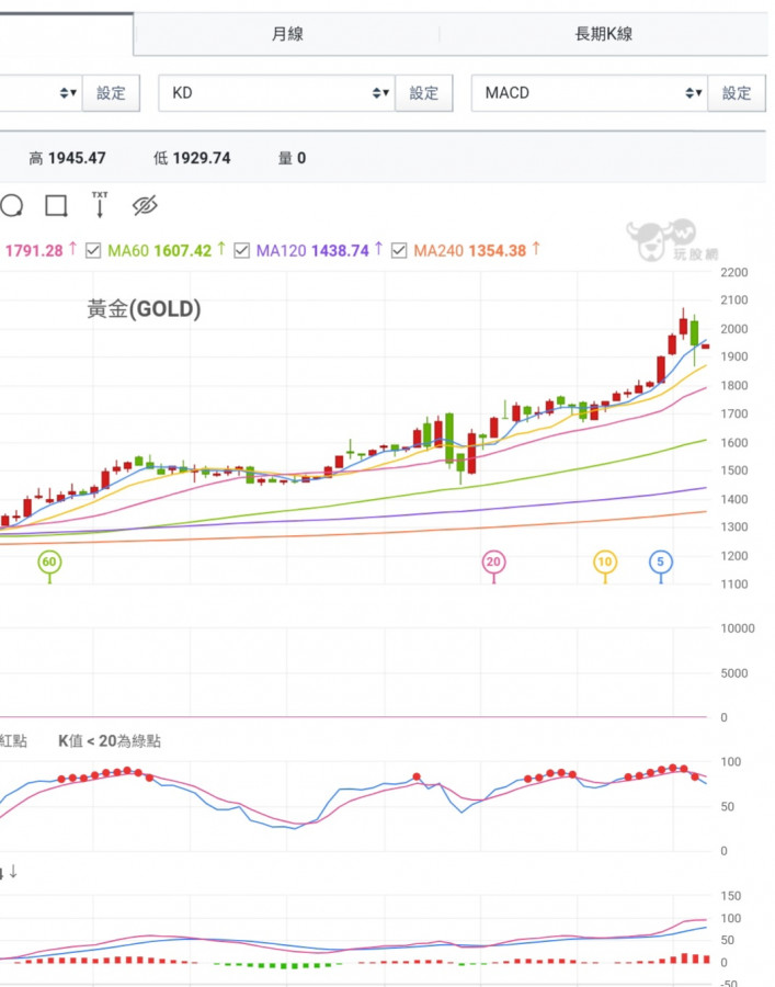 這個週線週均線持續上升,不過價在均線之下,但是靠很近,離不遠,還有希望價再漲,無心不奢望再創新高,只希望本週無論如何價都要站上1958,最好是2000。