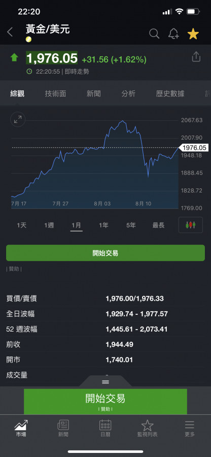 昨天買在晚盤成本1854*100g