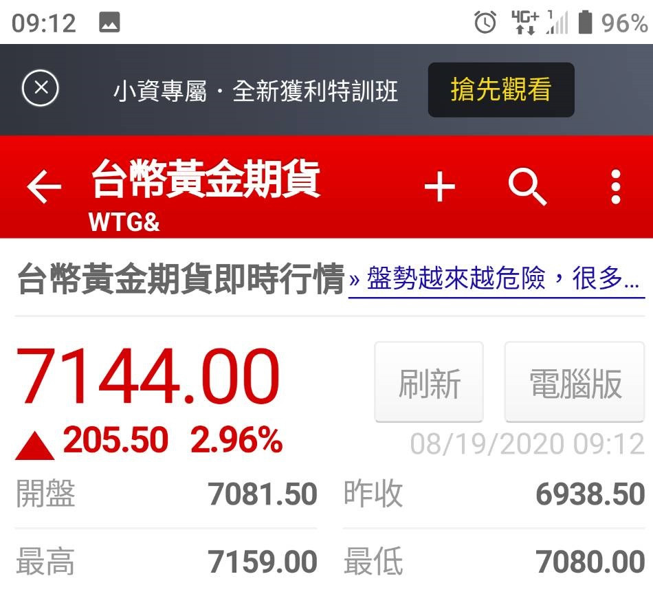 回覆 Mark33:8.19 台黃金期貨 開盤漲100起跳&...