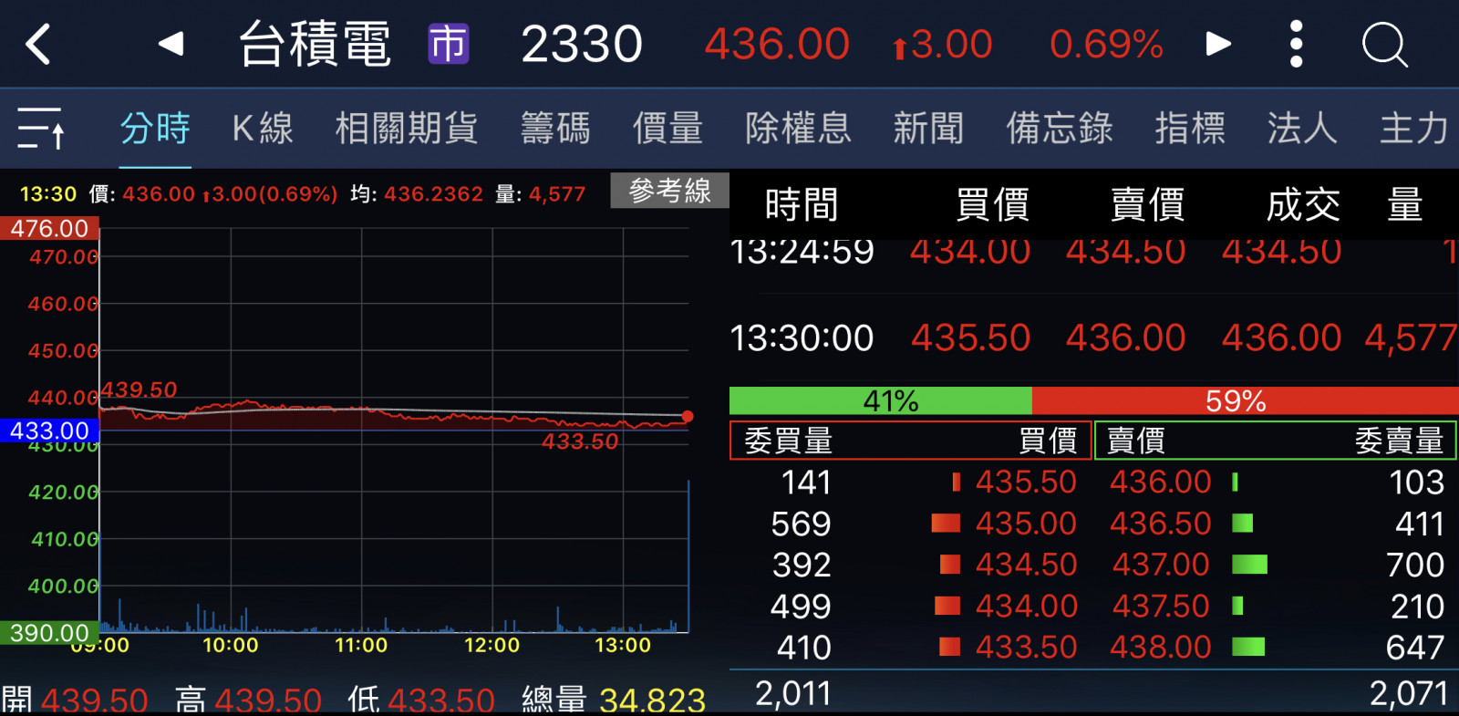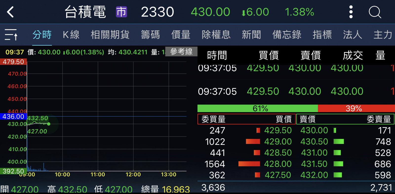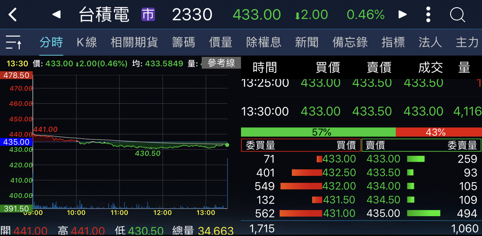 報告主席,剛看到三個投顧老師說,430是台積的買點
