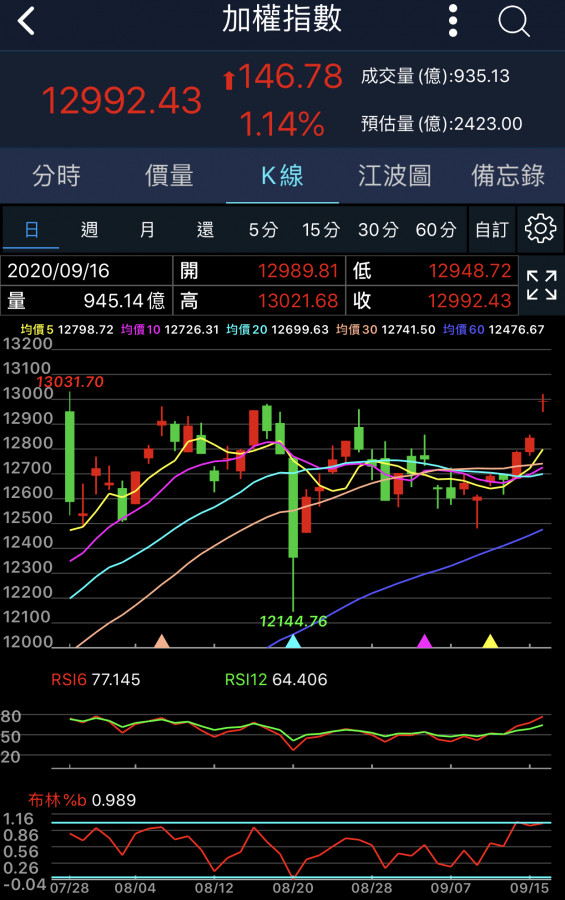 指數再度衝破13000點大關,最高報13021.68點,持續挑戰13031點歷史新高。