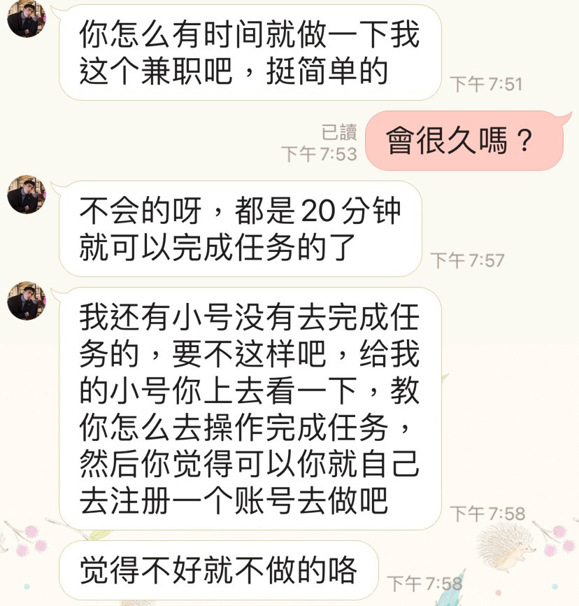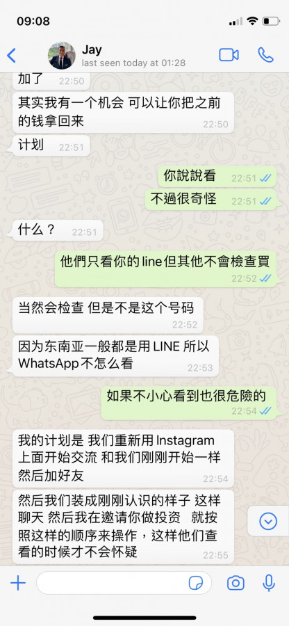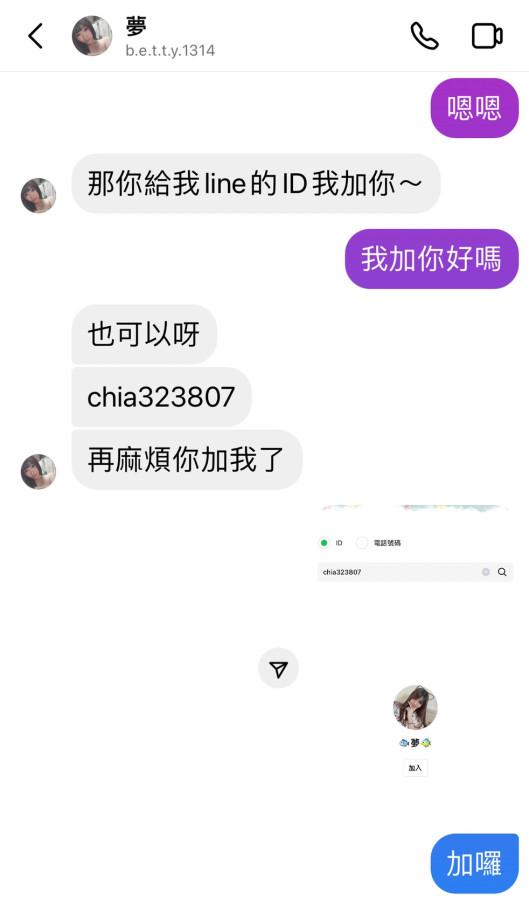 我會回應這篇是因為我在6月底時, 也是在Instagram上遇到這樣的人, SOP都相同, Instagram 聊了一下子就加LINE, 但沒有談什麼網戀, 就像一般朋友一樣聊