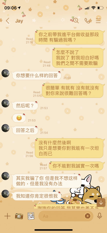 昨天看到這篇, 提起勇氣再去找那個人, 想請他坦白是不是在騙我, 貼出的圖片就是和對方的談話!