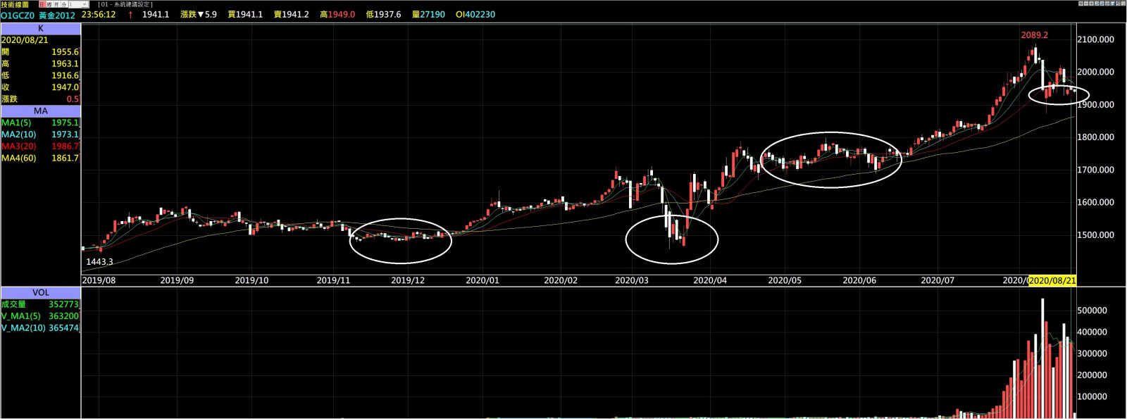 支撐價位估計在1880~1930之間,壓力在2000~2050附近