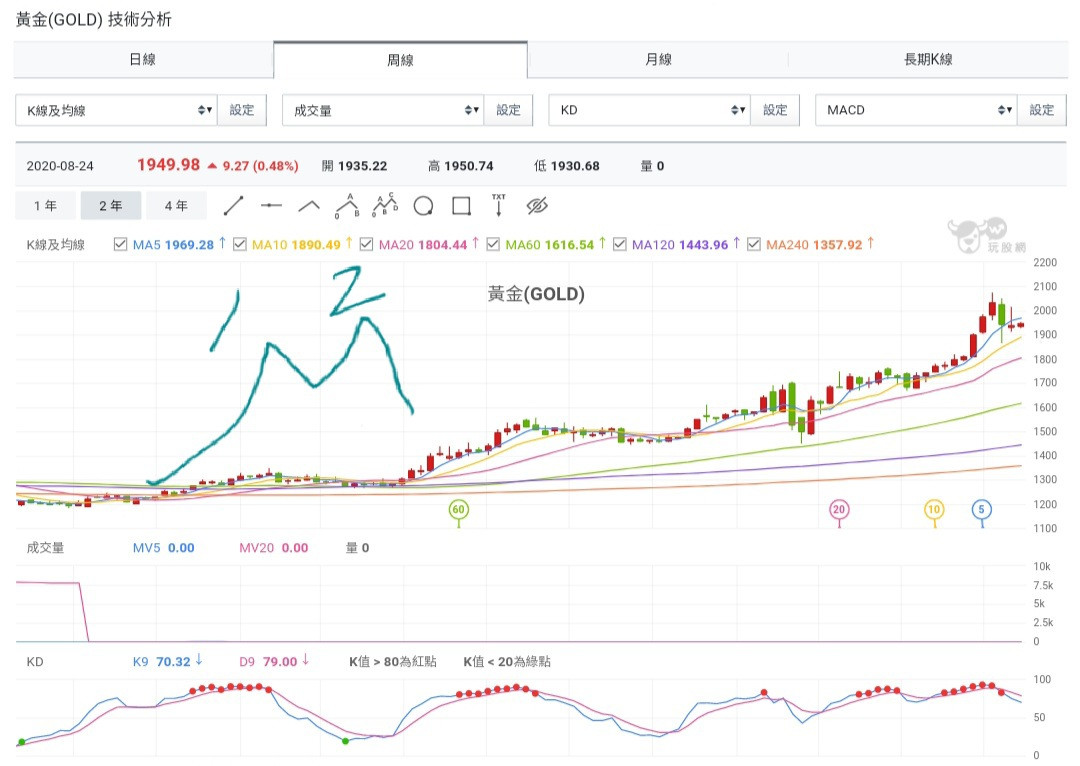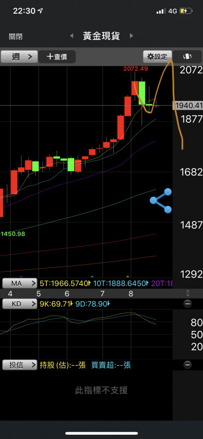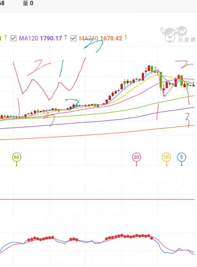 圖中手劃的形態是……有可能週線以假突破真拉回。