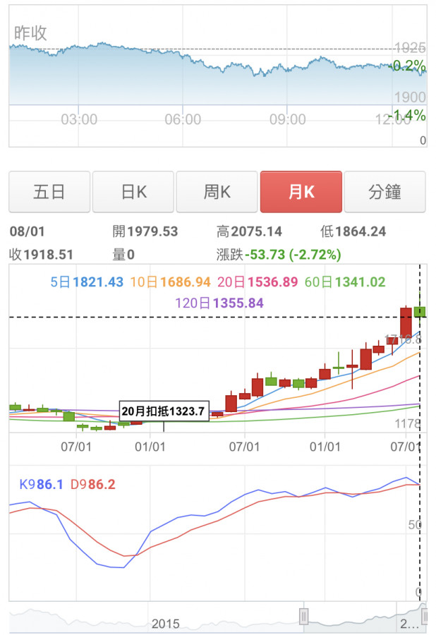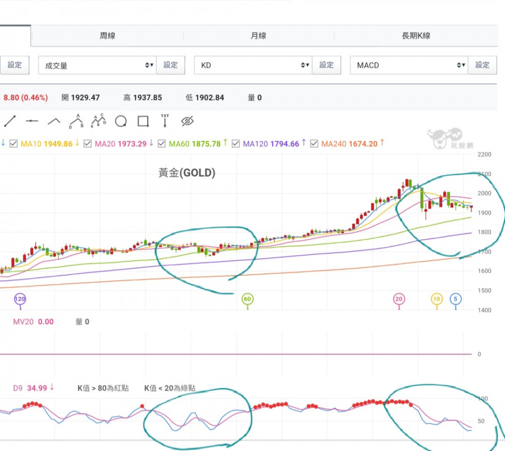 所以當價格先行,技術指標會修正多久時間,這就要看月週的K值動向。