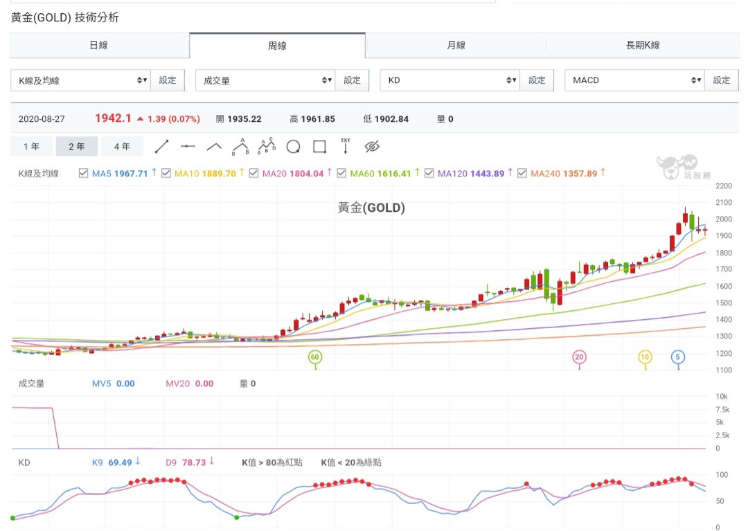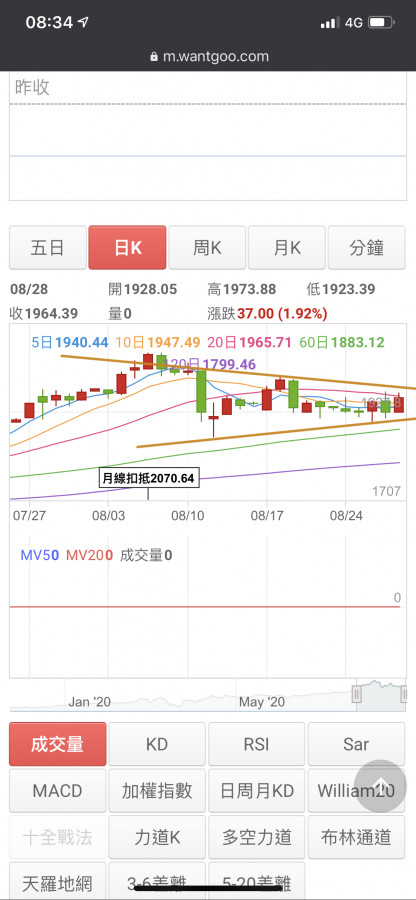 2. 目前本週紅K 約介於 MA5 1918 ~ MA20 1856 之間。