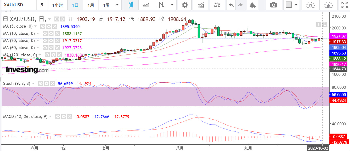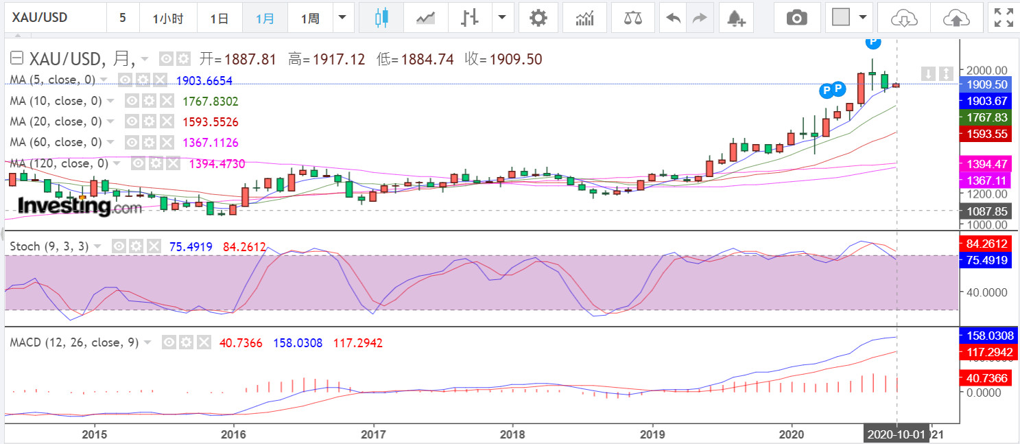 9月最高價 1992 最低價 1849 目前10月 MA5 1903