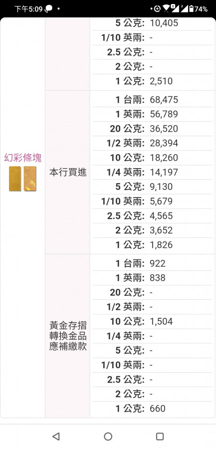 黃金印象大大,台銀美元存摺買的黃金可以換實體金出來,有分可回售的和不能回售的金條,可回售的幻彩金條再支付800多台幣的錢(鑄造保管費)就可換一盎司的幻彩金條出來。
