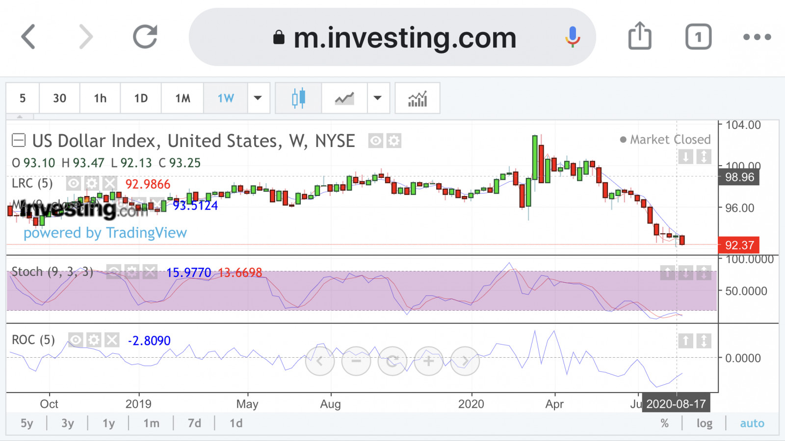 上週美元指數力圖振作;趨中回歸反彈,僅一週曇花一現便打回原形繼續趨勢向下,下週指數向92以下修正!
