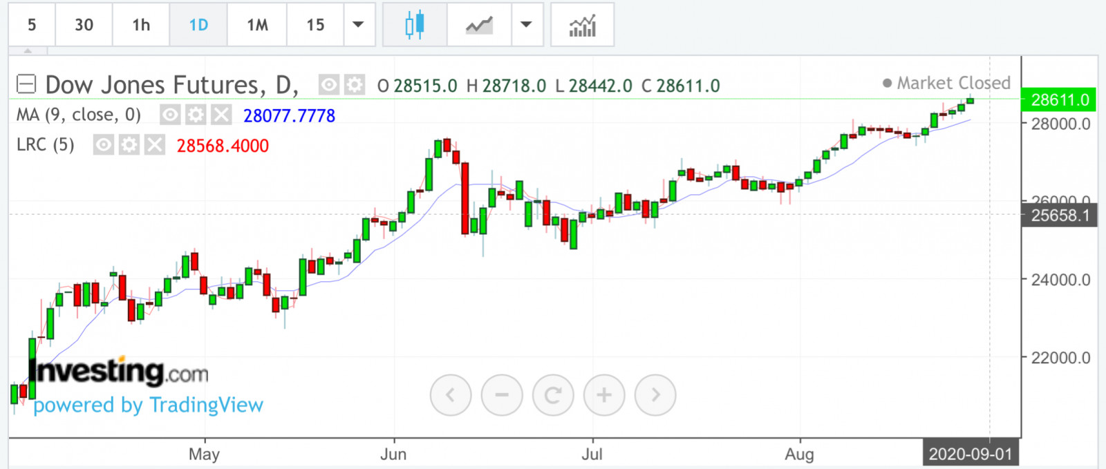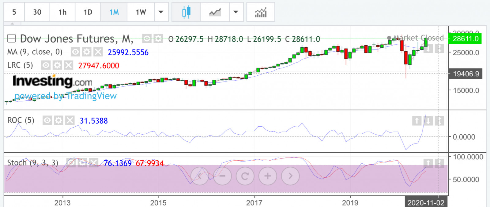 道瓊指數短、中期趨中回歸立馬趨勢續行向上,惟長線已出現指標背離跡象,然瑕不掩瑜擋不住突破3萬點企圖,同時埋下黃金二次底部後的資金行情!