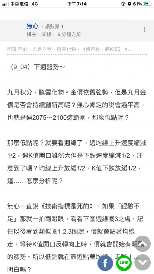 而無心大您啟發的何止一人?!連我這個不成才的投資幼幼班都能從您的文句中學到許多珍貴的觀念,也因此有信心入門開始操作黃金!