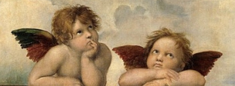小芙大貼的這張油畫裡,比較廣為人知的應該是這兩隻狀似無聊的小天使,也正切合最近每天看著不上不下黃金行情的心情吧!