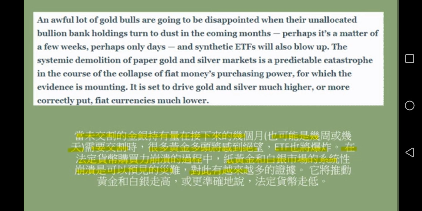 文章下半段也有提到金礦公司以及美元購買力問題,