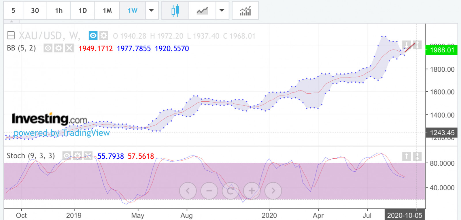 XAU/USD 未來2週站穩1968,5W均線轉為 45度角便能反轉修正持續向上挑戰突破!