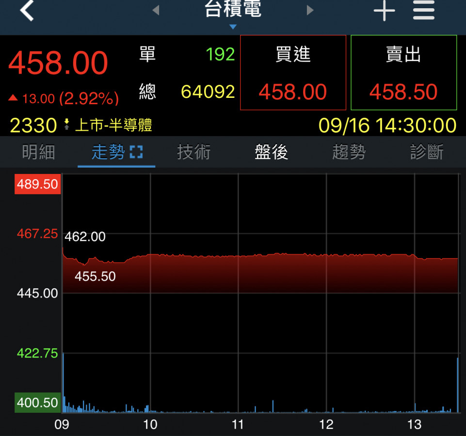 回覆 嗨爪主席:剛剛又一次!觸及433.5 沒多久就很快...