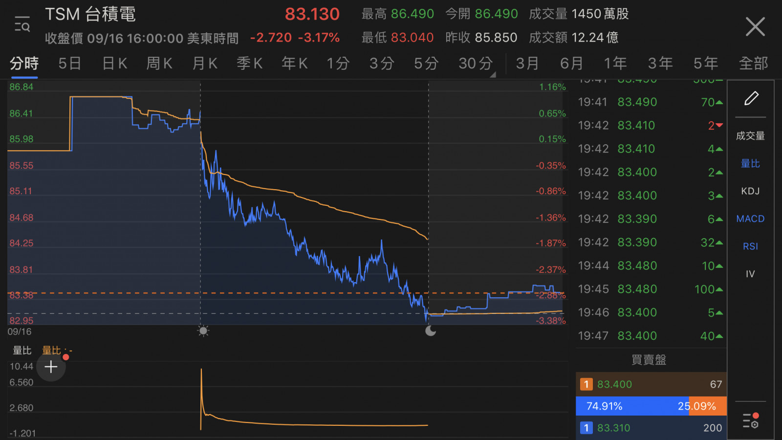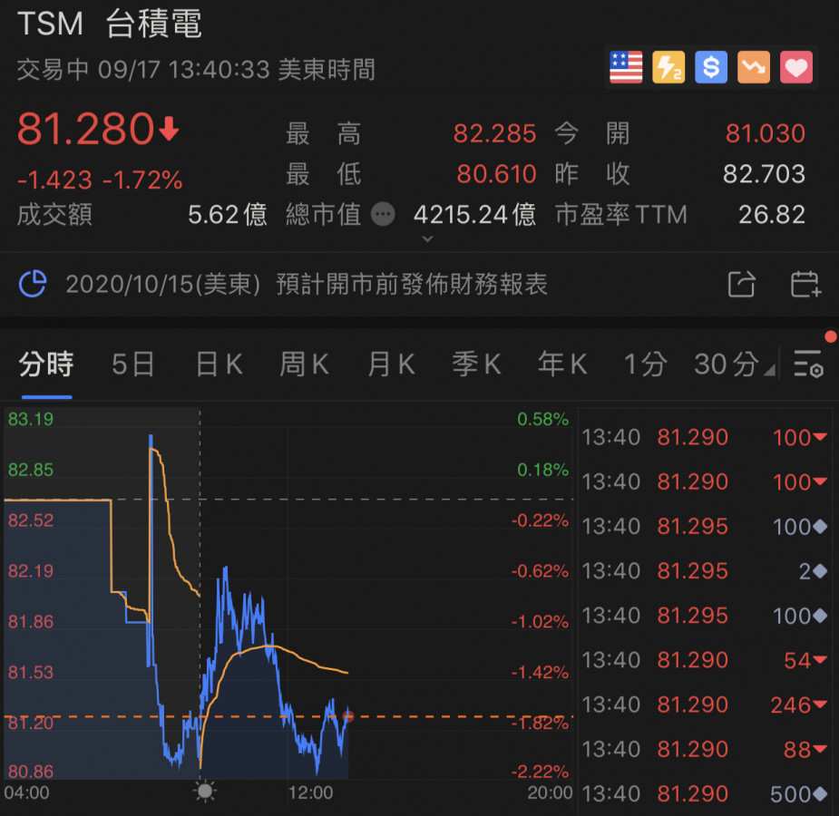 台積電ADR 小小跌