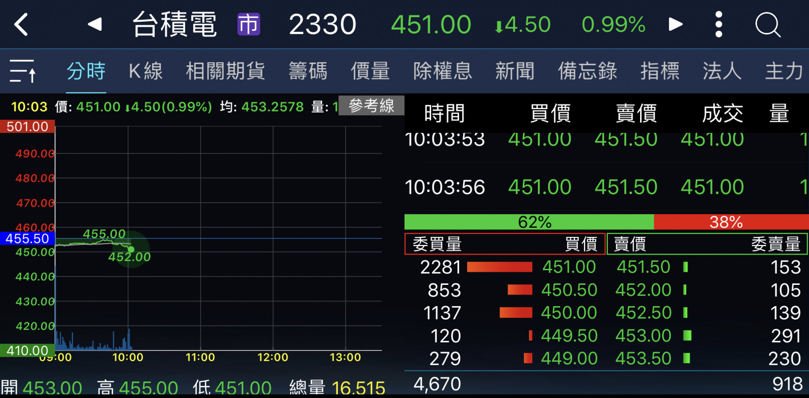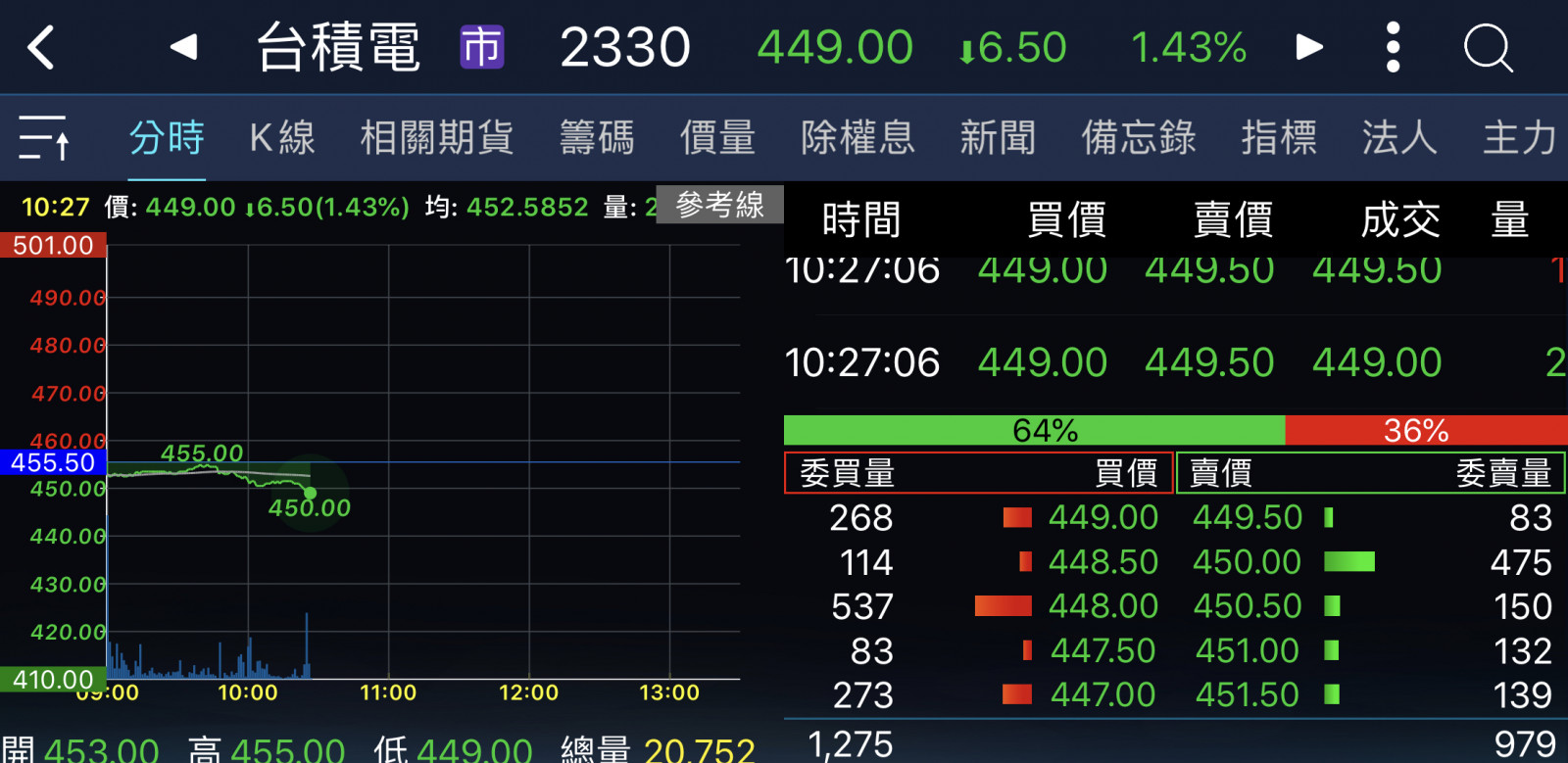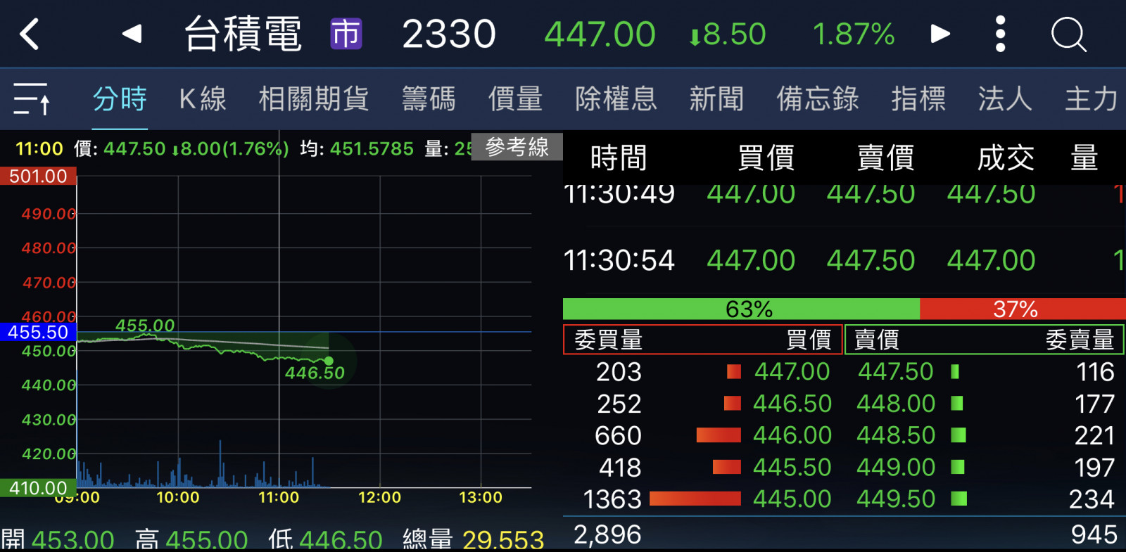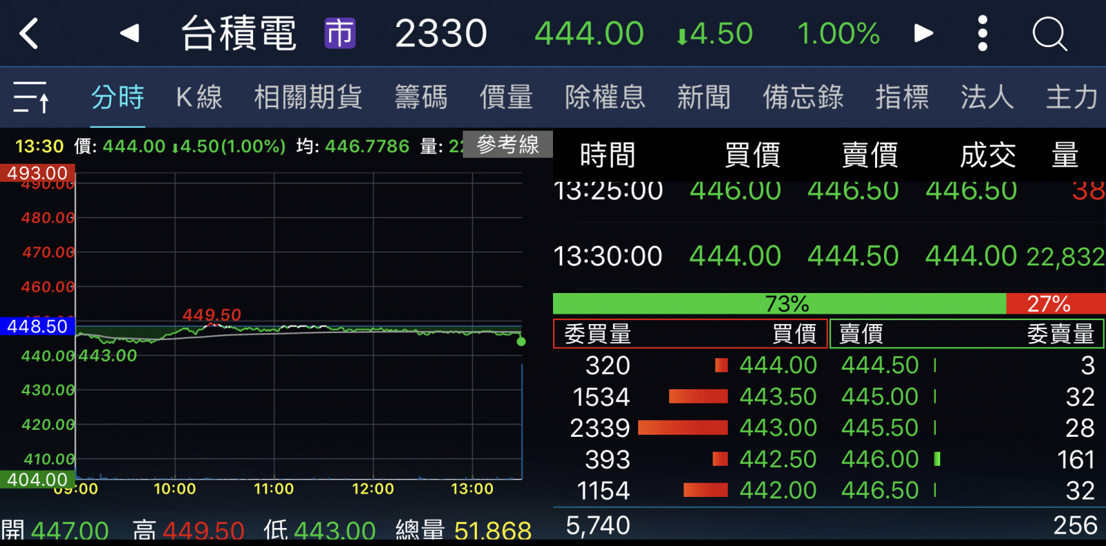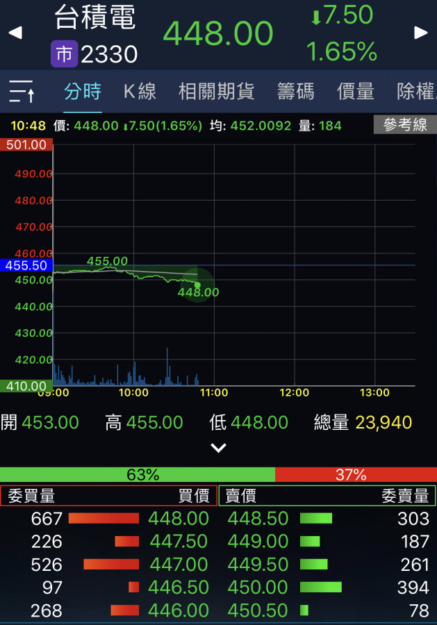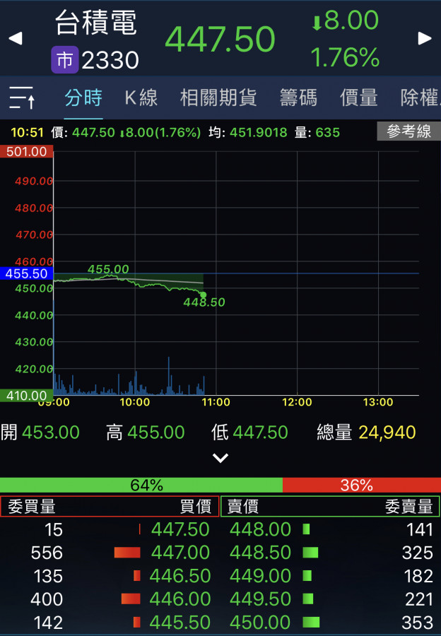 回覆 嗨爪主席:來到448支撐區了……=..='...