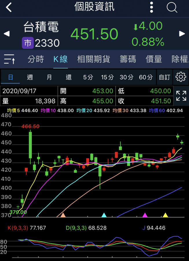 今天積哥會收紅 也就是 438.5 以上