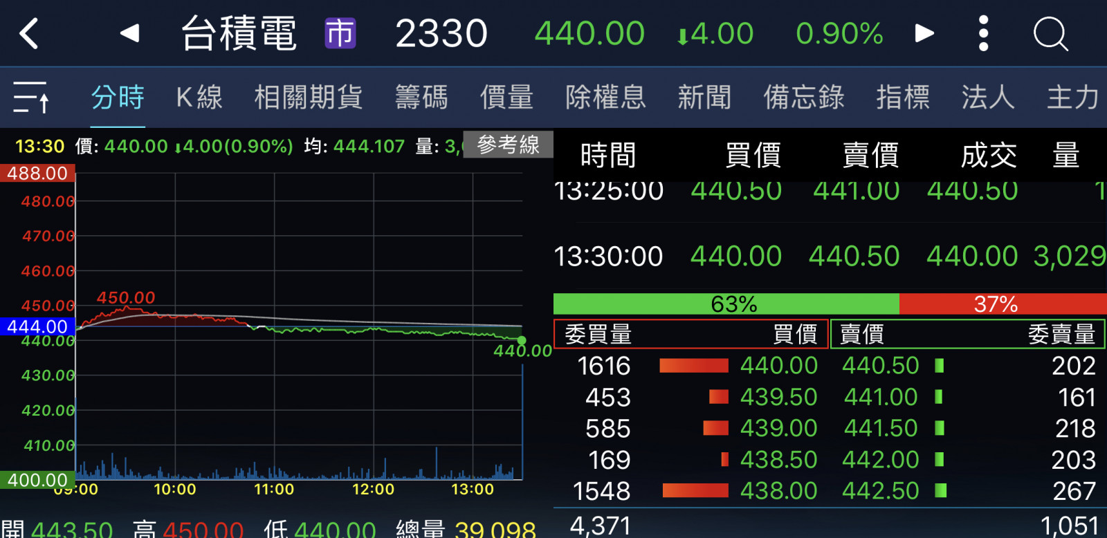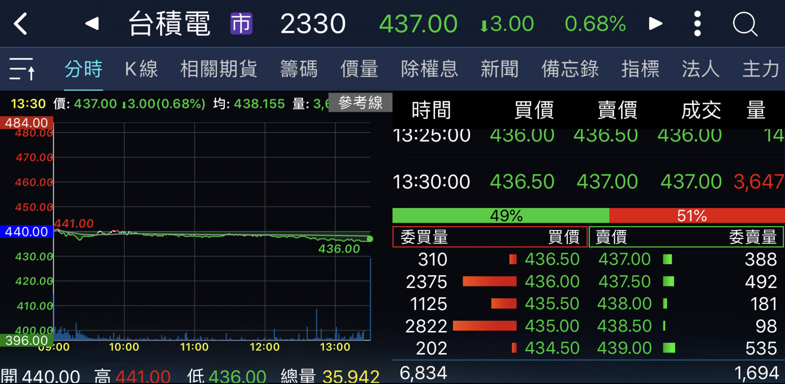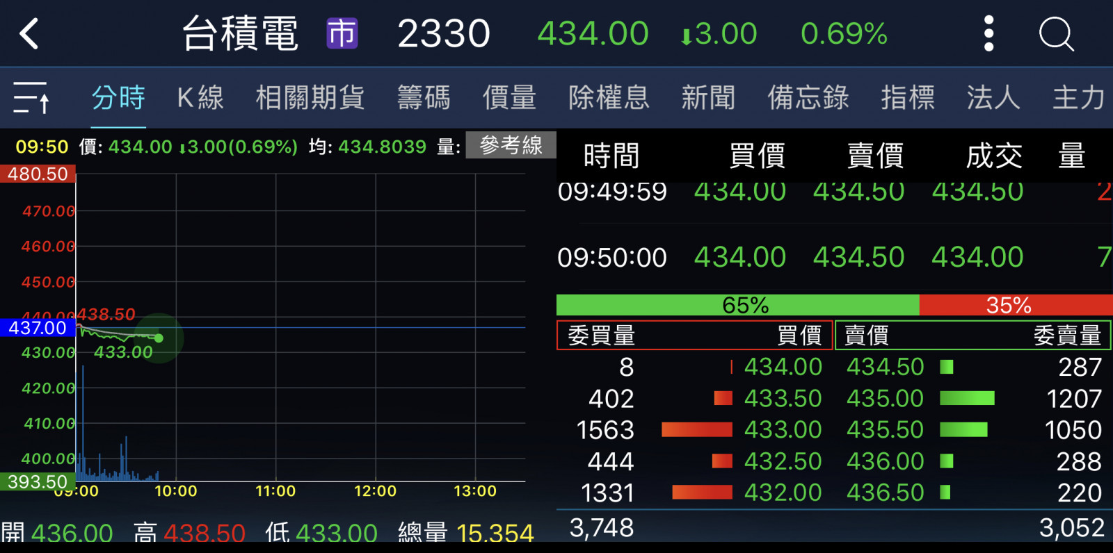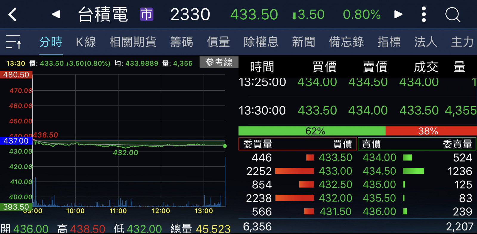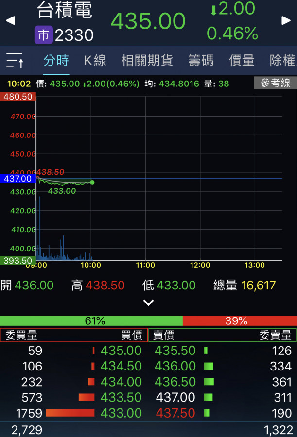回覆 嗨爪主席:原本以為尾盤試搓會出現435……...