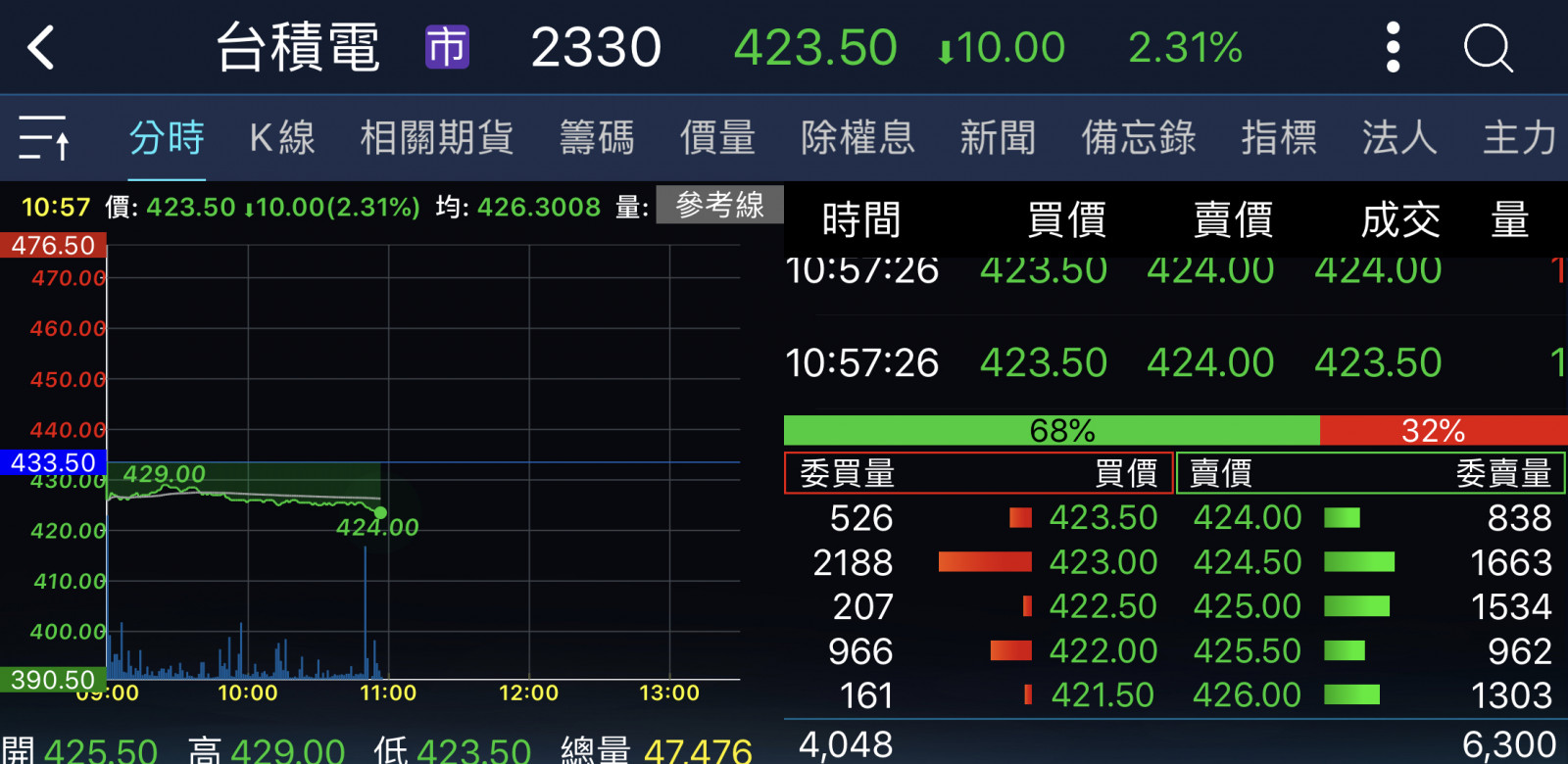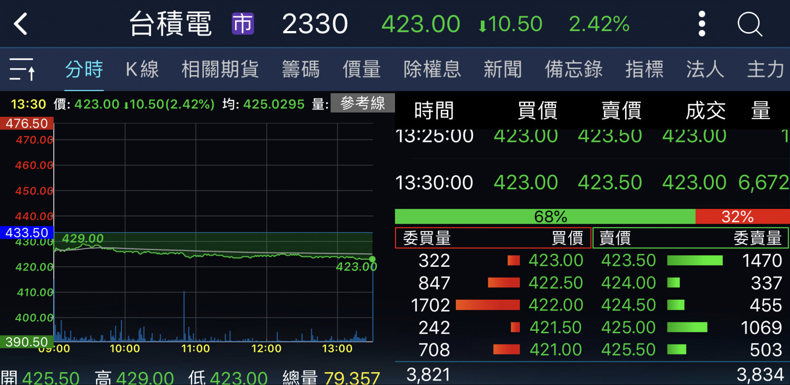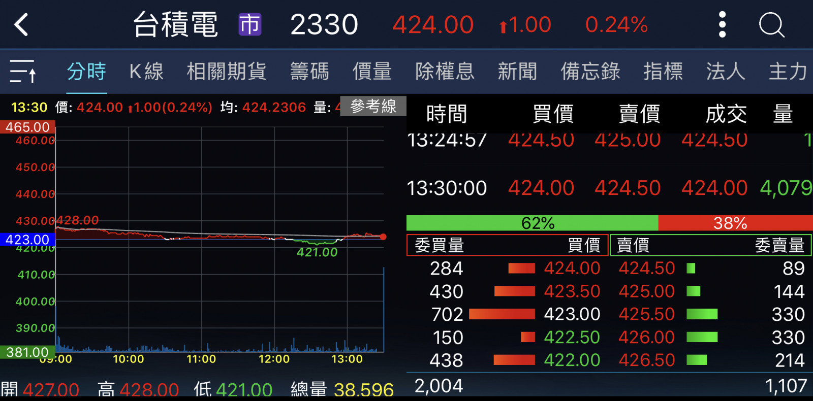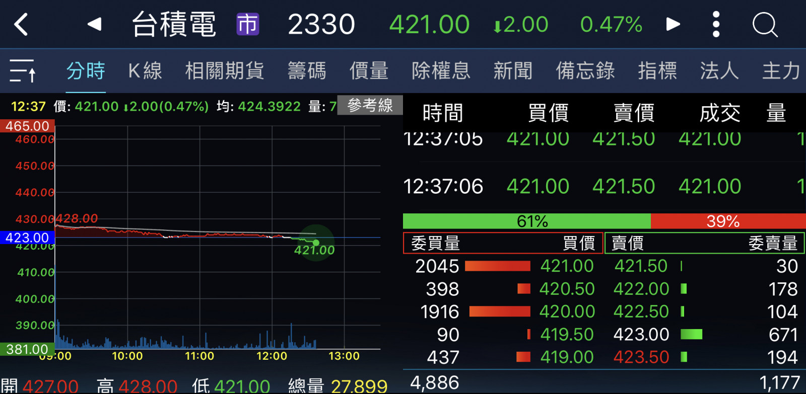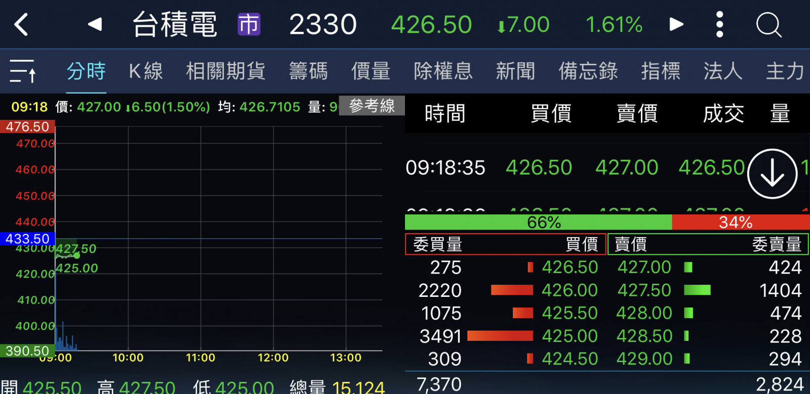 回覆 嗨爪主席:原本以為尾盤試搓會出現435……...
