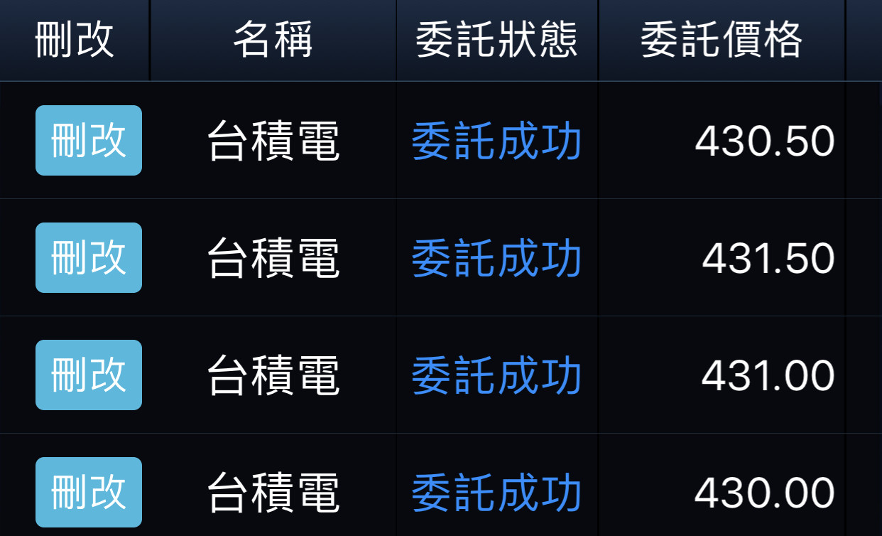 回覆 嗨爪主席:靠!我剛改單想說掛435慢慢等然後再調整...