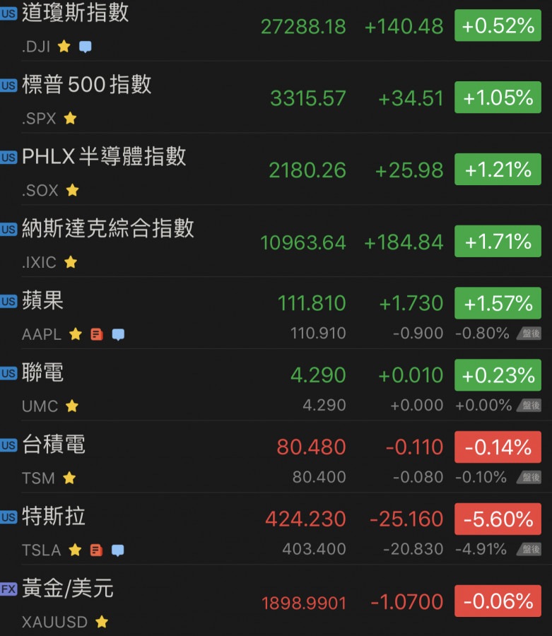昨晚美股漲