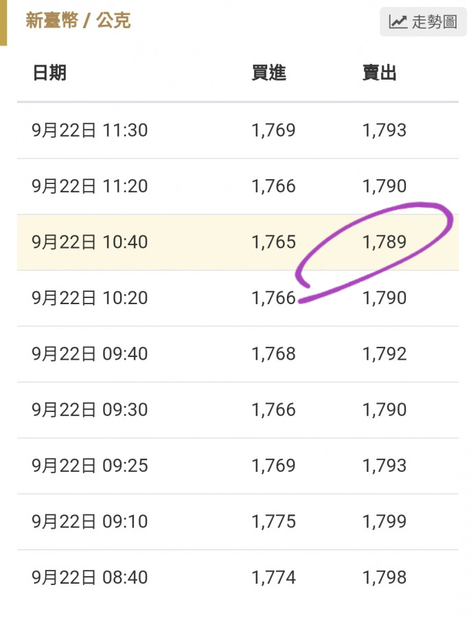 只要台幣掉 10 元,我就買 1g
