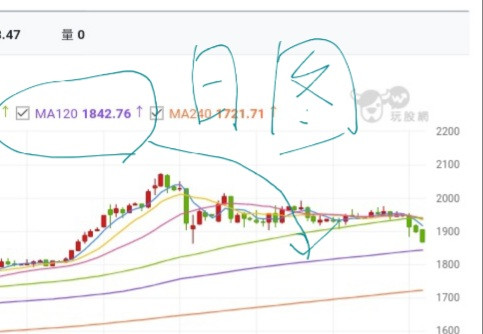 從日線圖看(120線1843),從週線圖看回測均線(20週均線1848),再看月線圖(5月均線1860)……,這樣子看來雖然目前都尚未跌破,不過都還是必須小心應對,如何應對呢?不是害怕,而是高興,就算跌到10月均線1730那更好不過,到時就像3月一樣又沒幾天站回5月均線位子……。