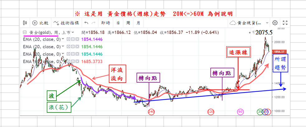 那麼我們就更清楚知道目前金價的初期壓力及重要支撐(1930~1864)。這樣子大概心裡有底了吧!(均線分析完成後)